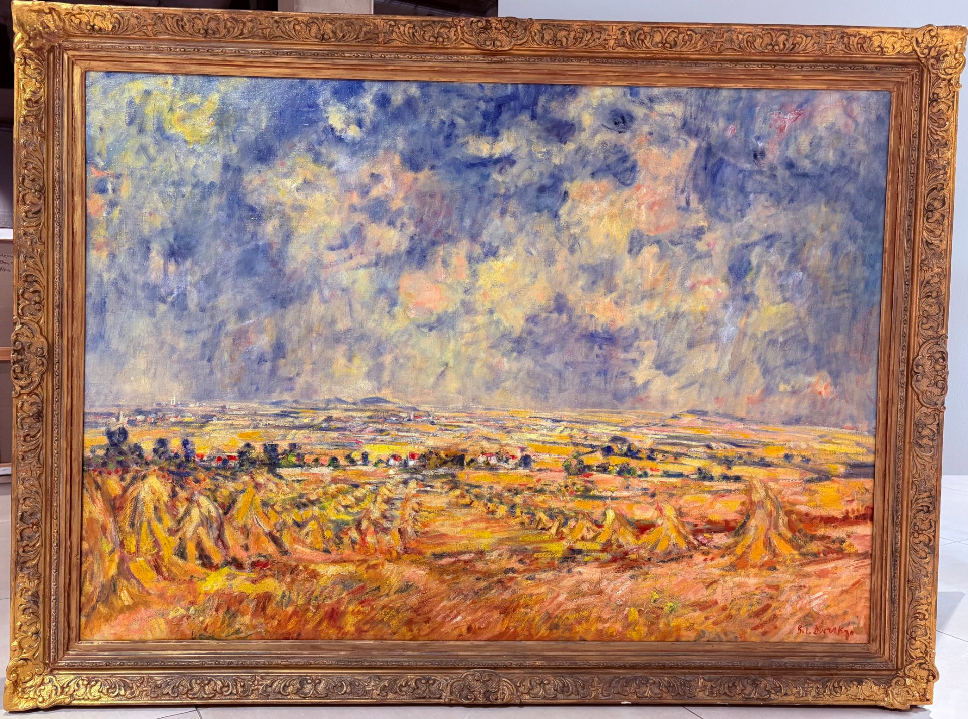 Autor: Bohumír Dvorský Název: Žně u Drahotovic Technika: olej Rozměr bez rámu: 100 x 145 cm Rozměr s rámem: