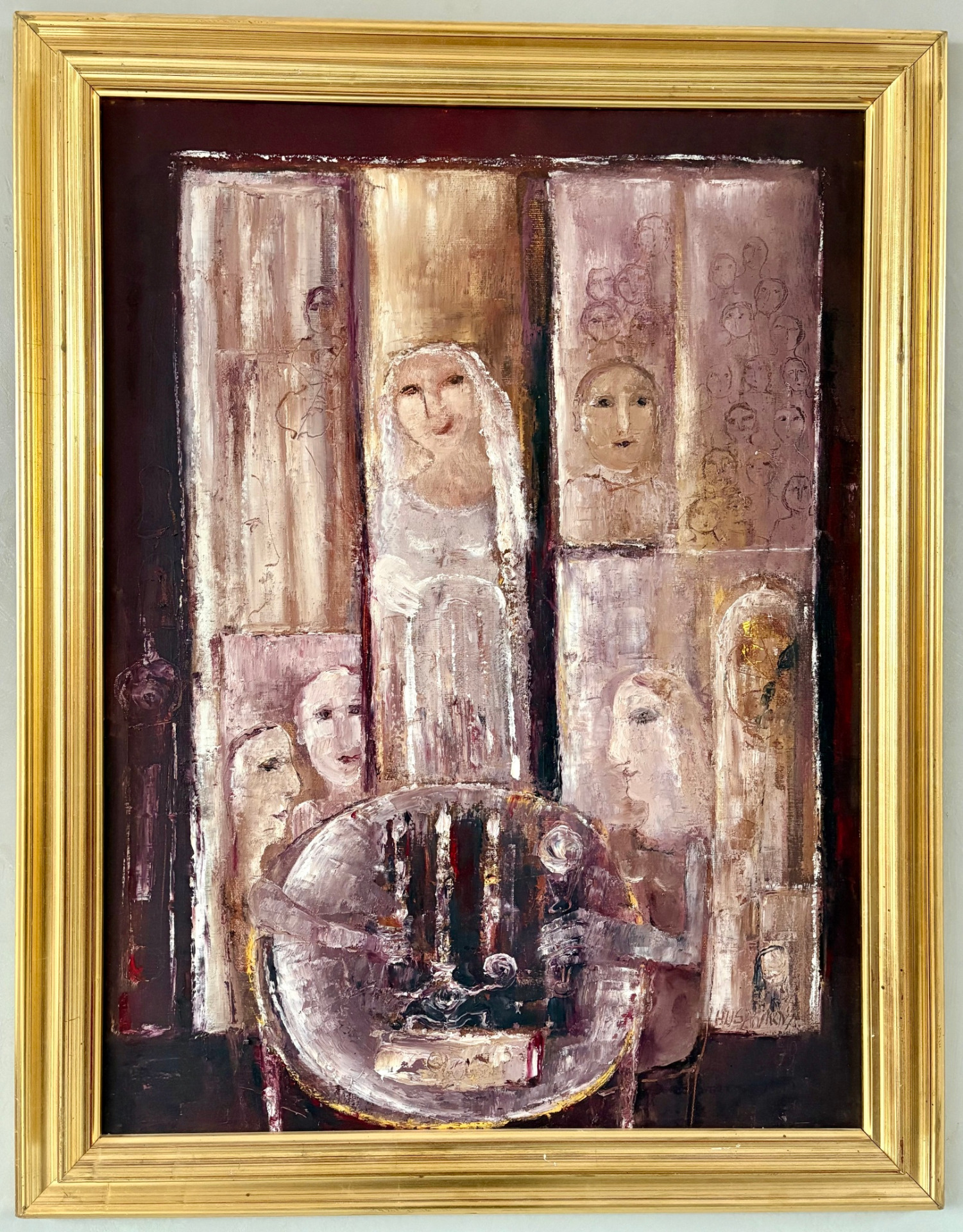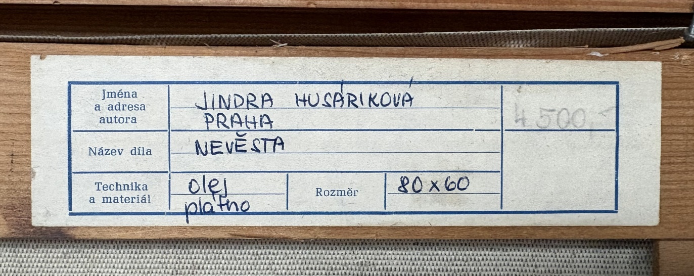 Autor: Jindra HusárikováNázev: Nevěsta Technika: olej na plátně Rozměr bez rámu: 80 x 60 cm Rozměr s rámem: