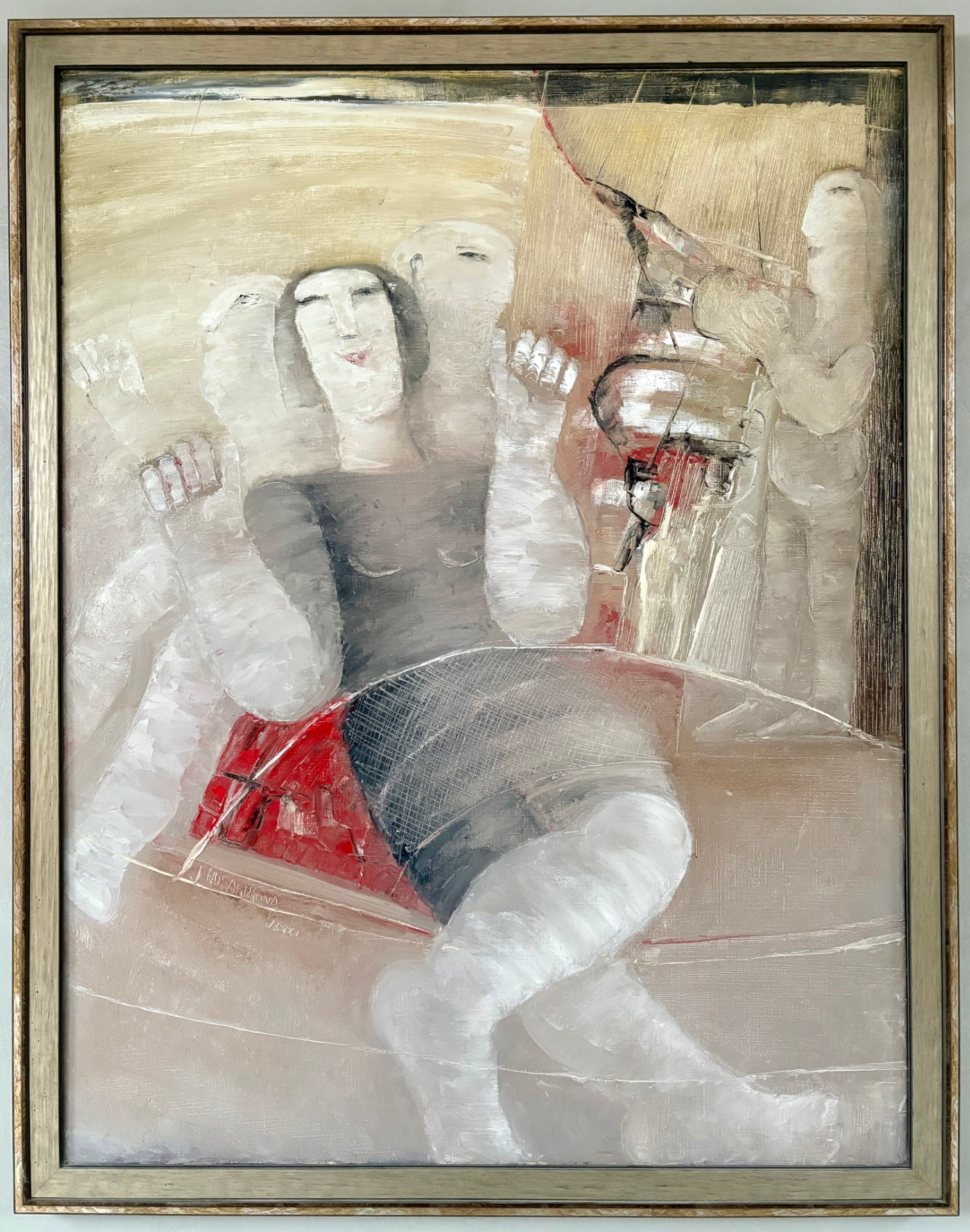 Autor: Jindra HusárikováNázev: Veselý den Technika: olej na plátně Rozměr bez rámu: 109,5 x 85 cm Rozměr s rámem: