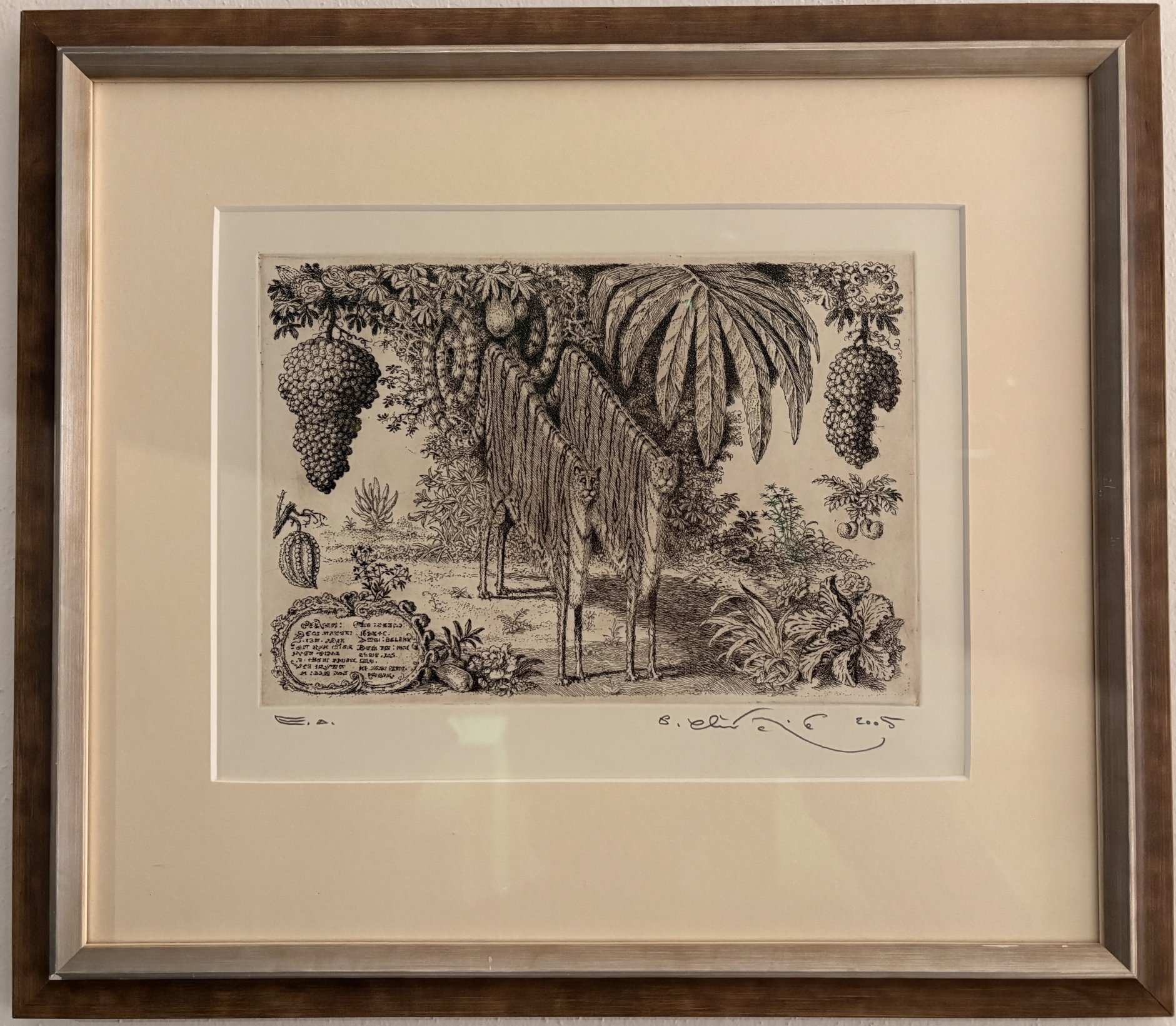 Autor: Peter Klúčik Název: V pralese Technika: lept Rozměr bez rámu: 20 x 26 cm Rozměr s rámem: